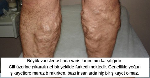 Bariz şekilde çıkıntı yapan ve cilt üzerinden net bir şekilde çıplak gözle görülen damar genişlemesi büyük (kalın) varis ismini almaktadır.